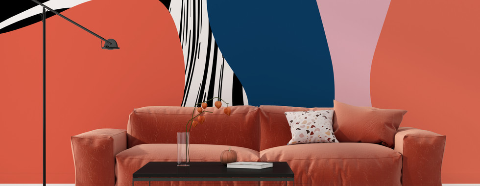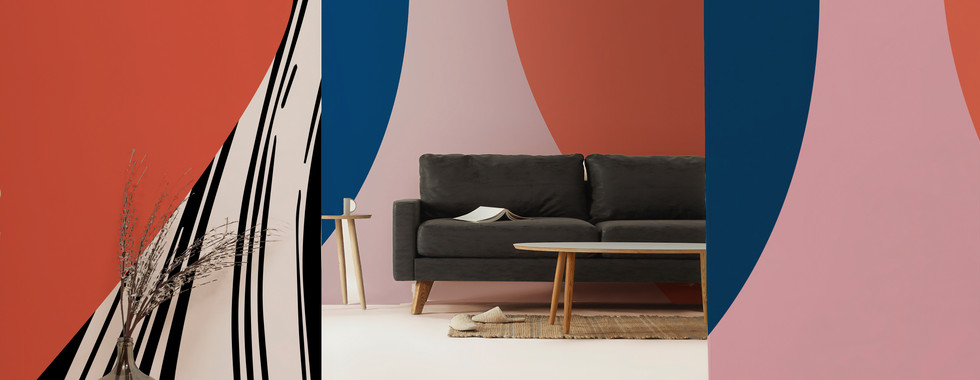 There are five designs in the collection, they are all called Keep it Moving and labelled from A-E. They all feature Lois’ signature sweeping curves and bold colour combinations. As always, they can be recoloured and printed onto any of our wallcoverings, and we can work on bespoke designs with Lois too!